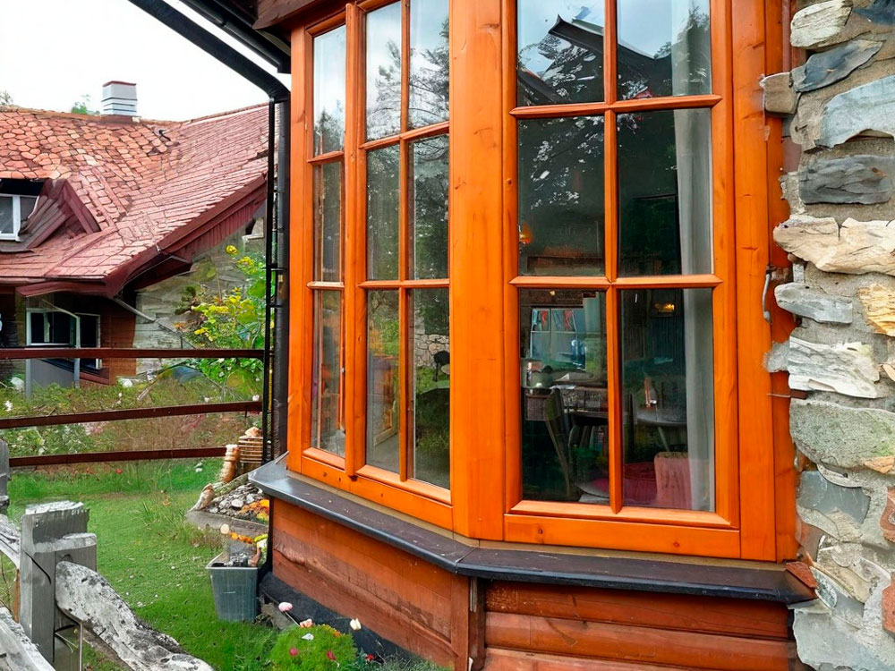 Эркер часто применим в домах из бруса. Технология укладки, гидроизоляции и утепления таких домов в достаточной мере отработана и надежность ее в большей степени зависит от мастерства и дотошности исполнителей. Персональные рекомендации владельца и достаточный бюджет - вот все, что нужно для внесения в проект эркера в качестве декоративного и функционального элемента в общей конструкции дома.