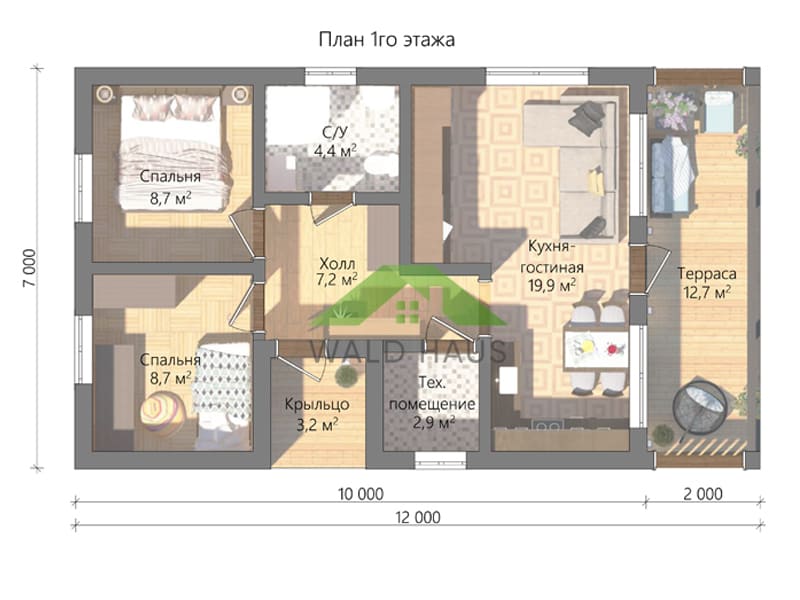 Каркасный дом Вальдхоф - Проект дома 7,0 х 12,0