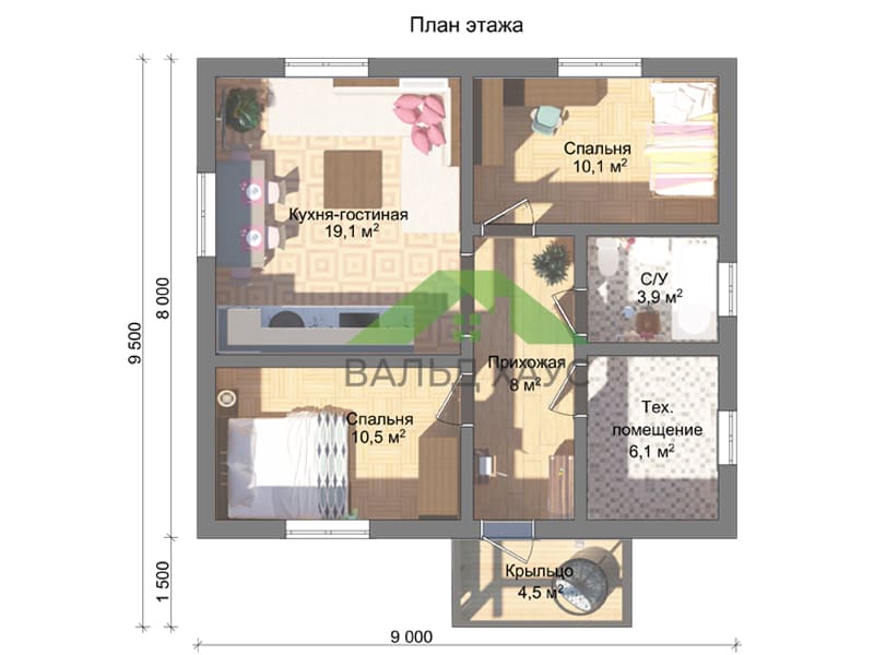 9,0х9,5 м