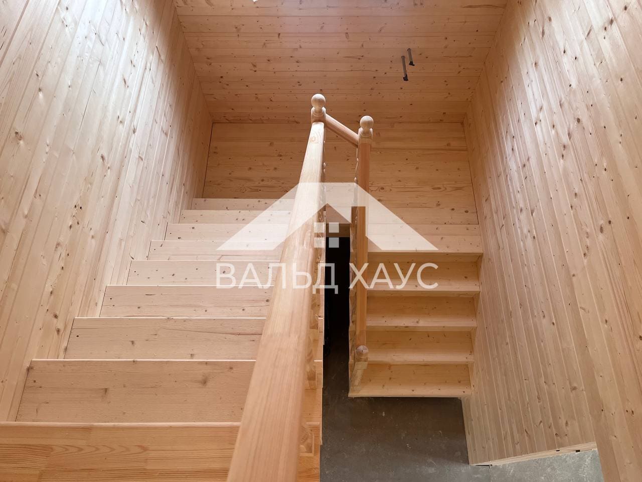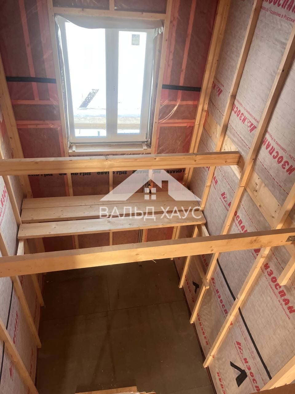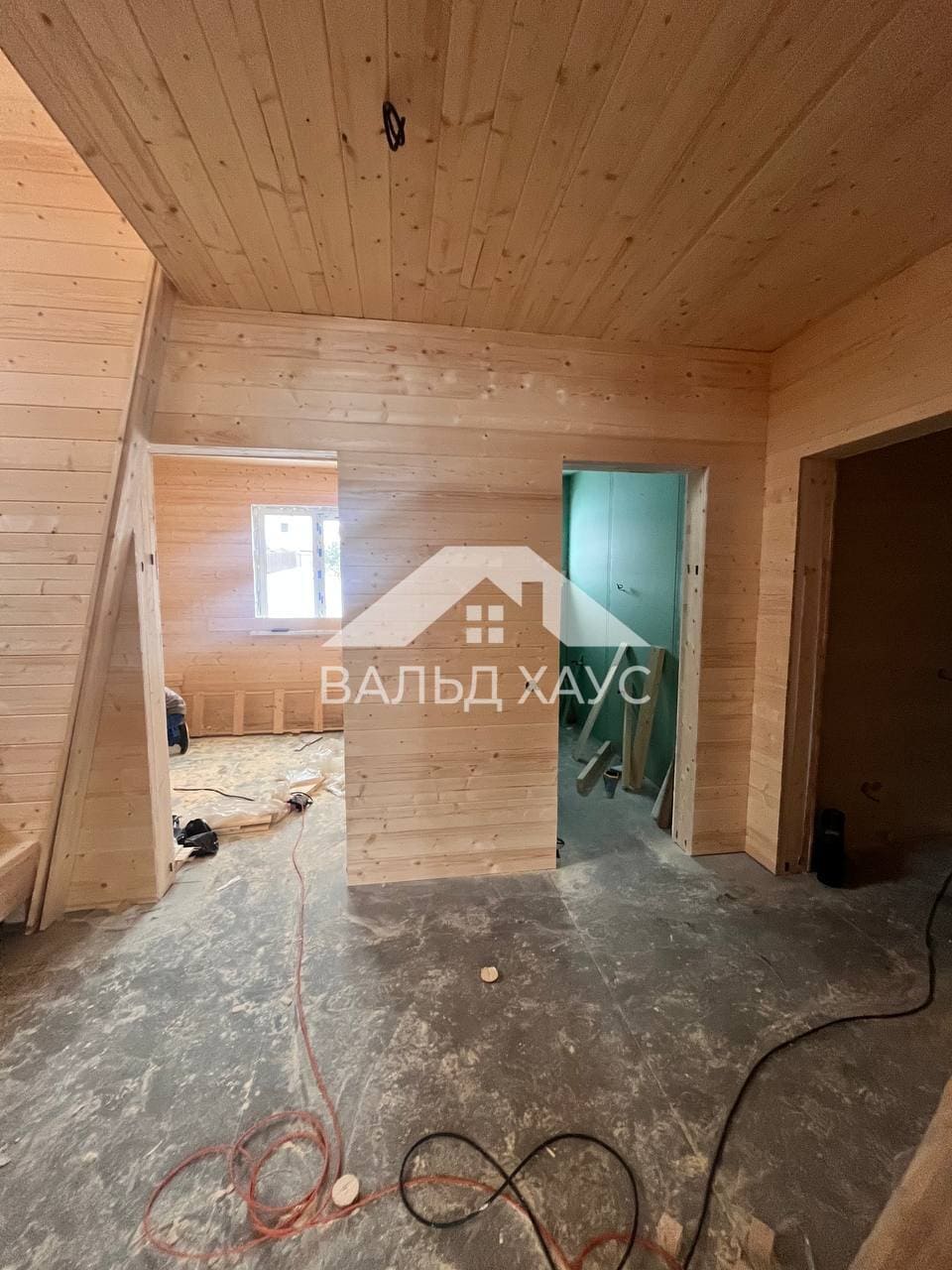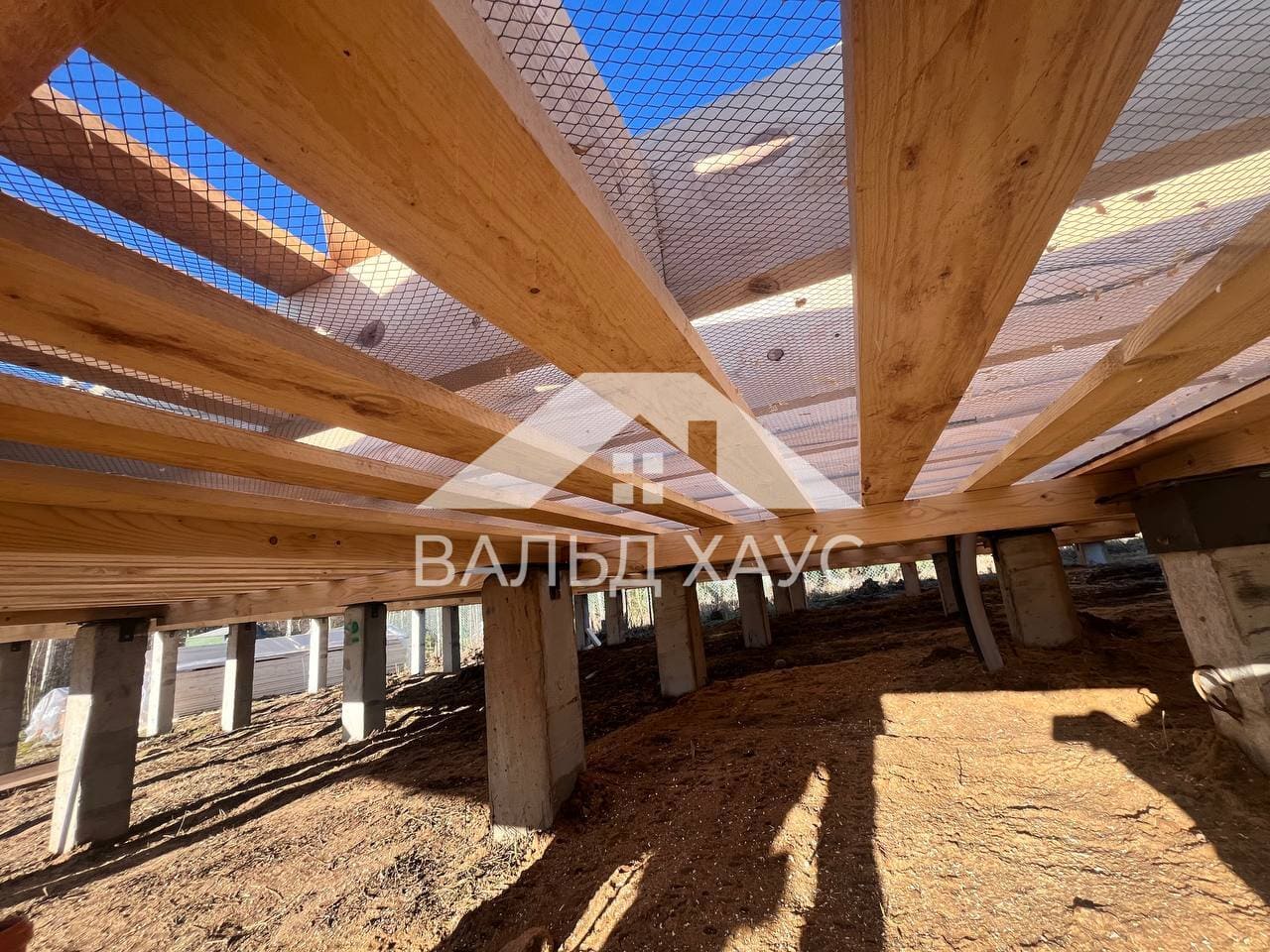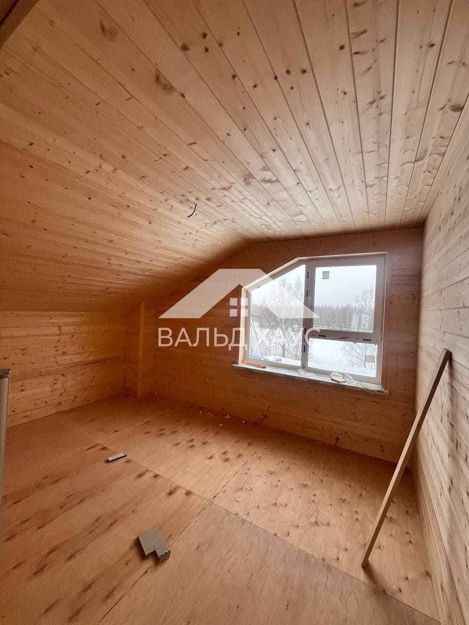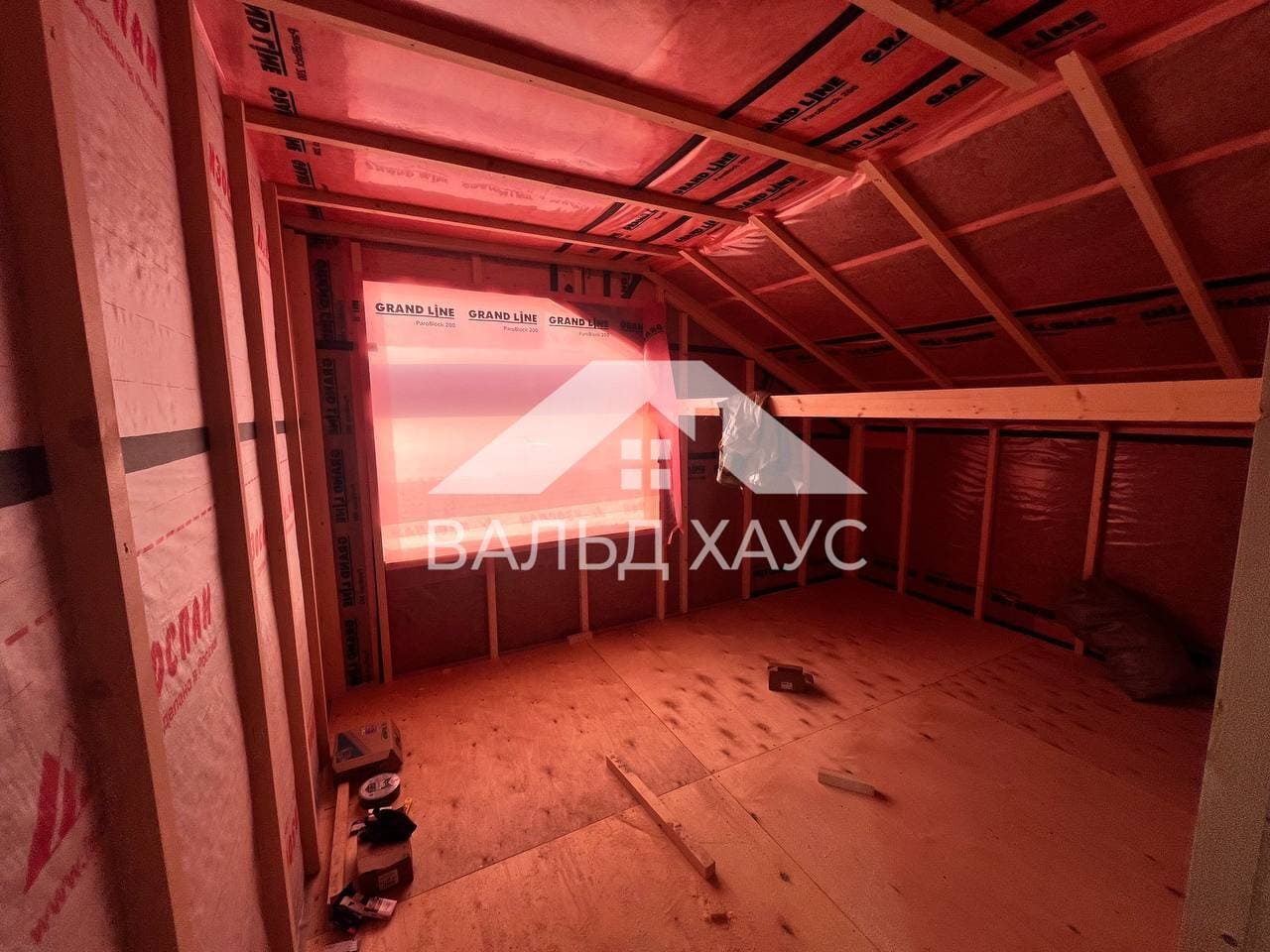 Внутренняя отделка выполнена из вагонки и гипрока в технических помещениях. Сделаны все коммуникации по дому, включая теплые полы и стяжку по первому этажу.