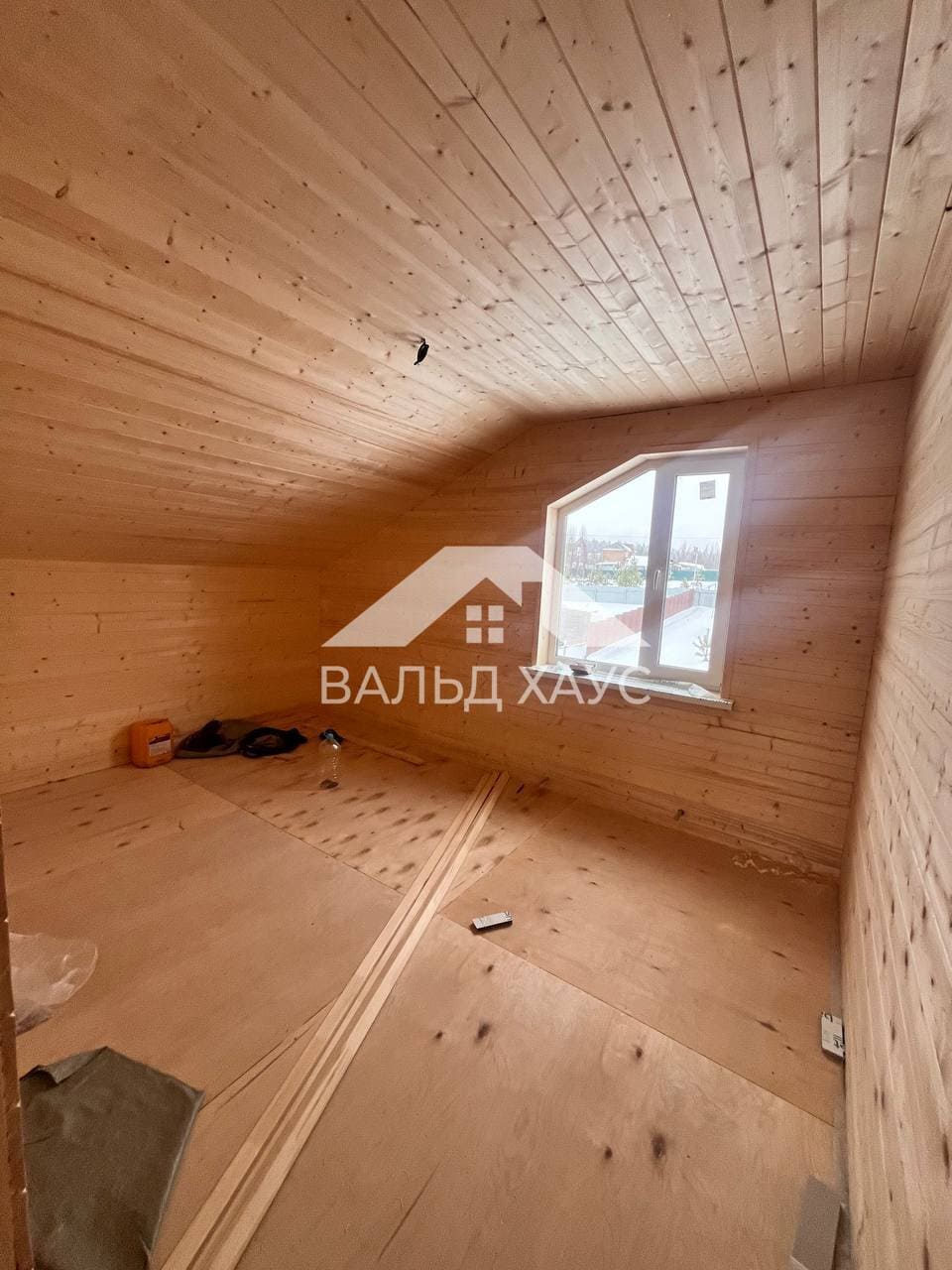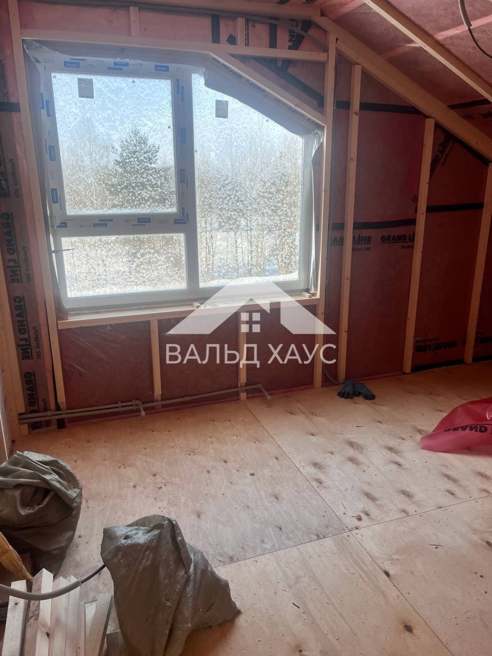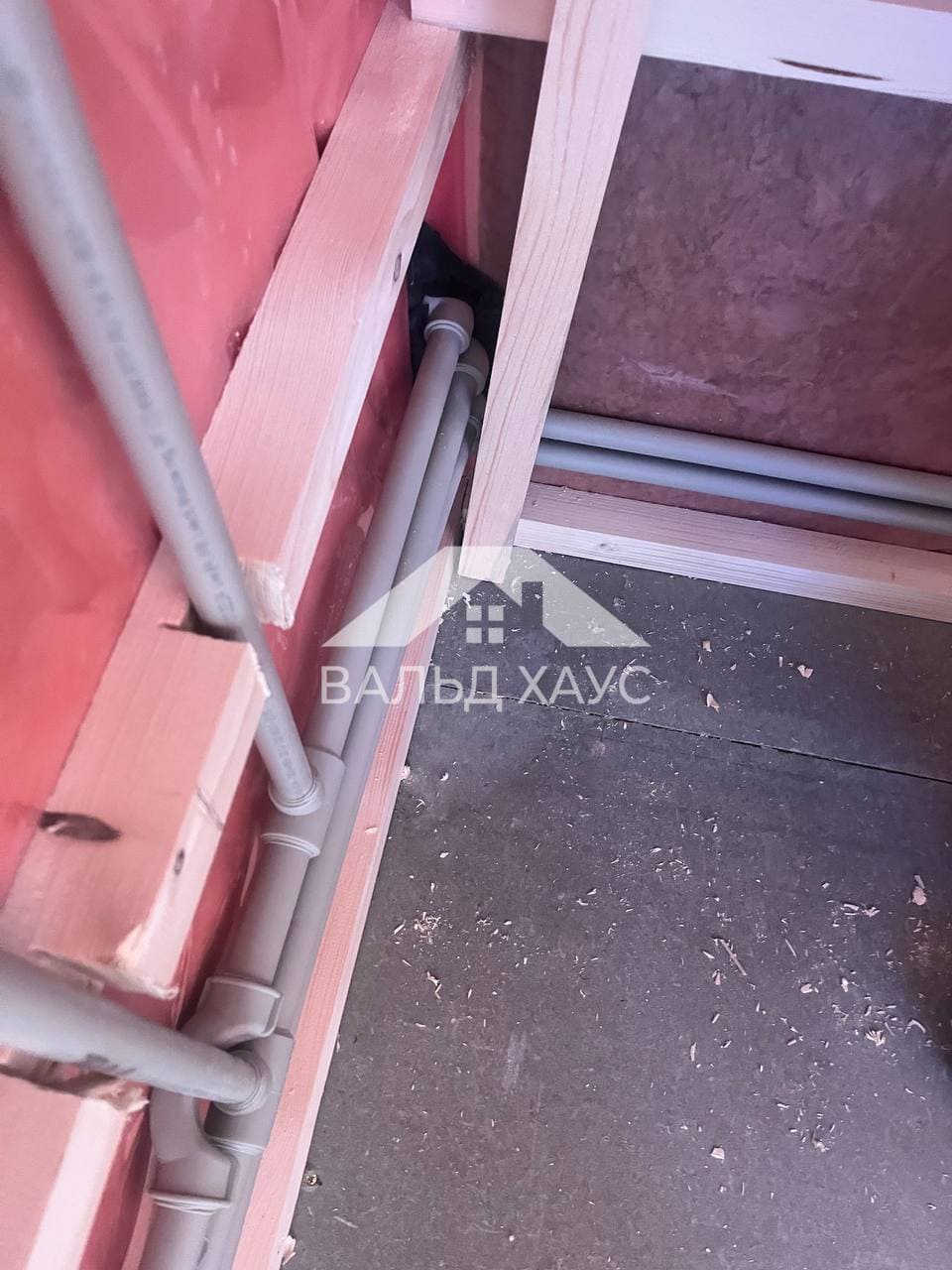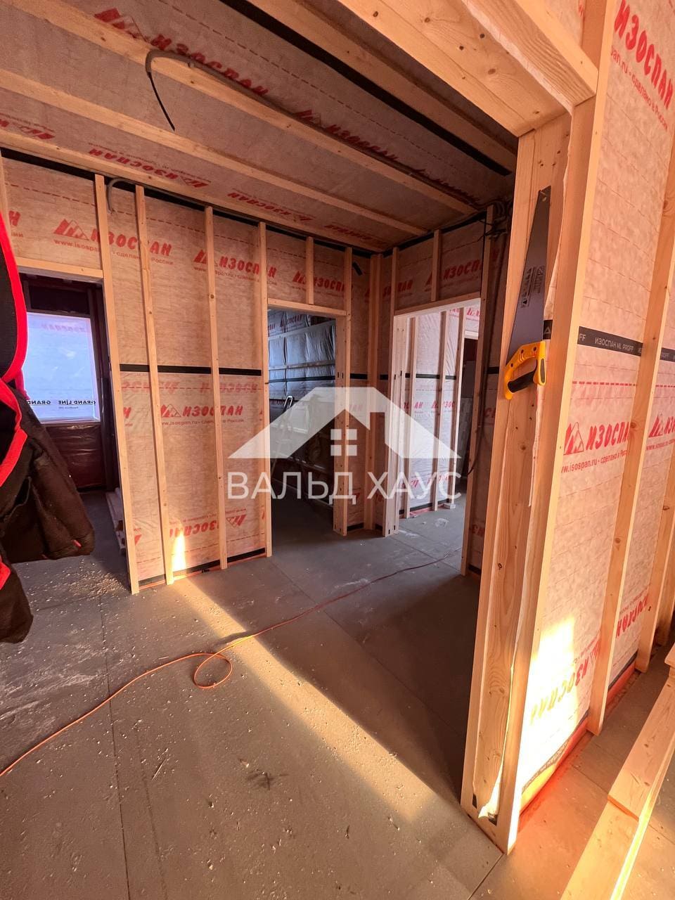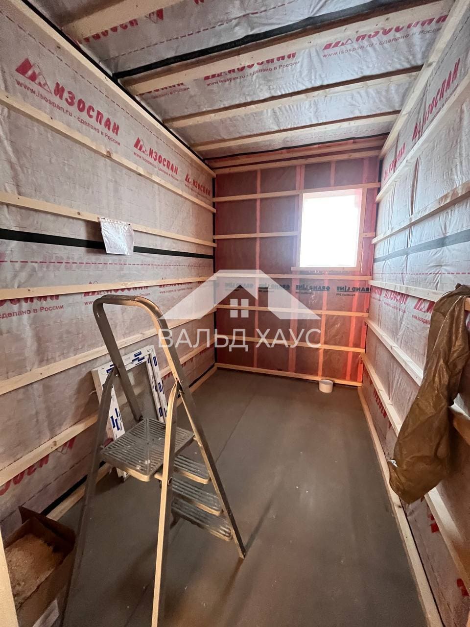 Внутренняя отделка выполнена из вагонки и гипрока в технических помещениях. Сделаны все коммуникации по дому, включая теплые полы и стяжку по первому этажу.