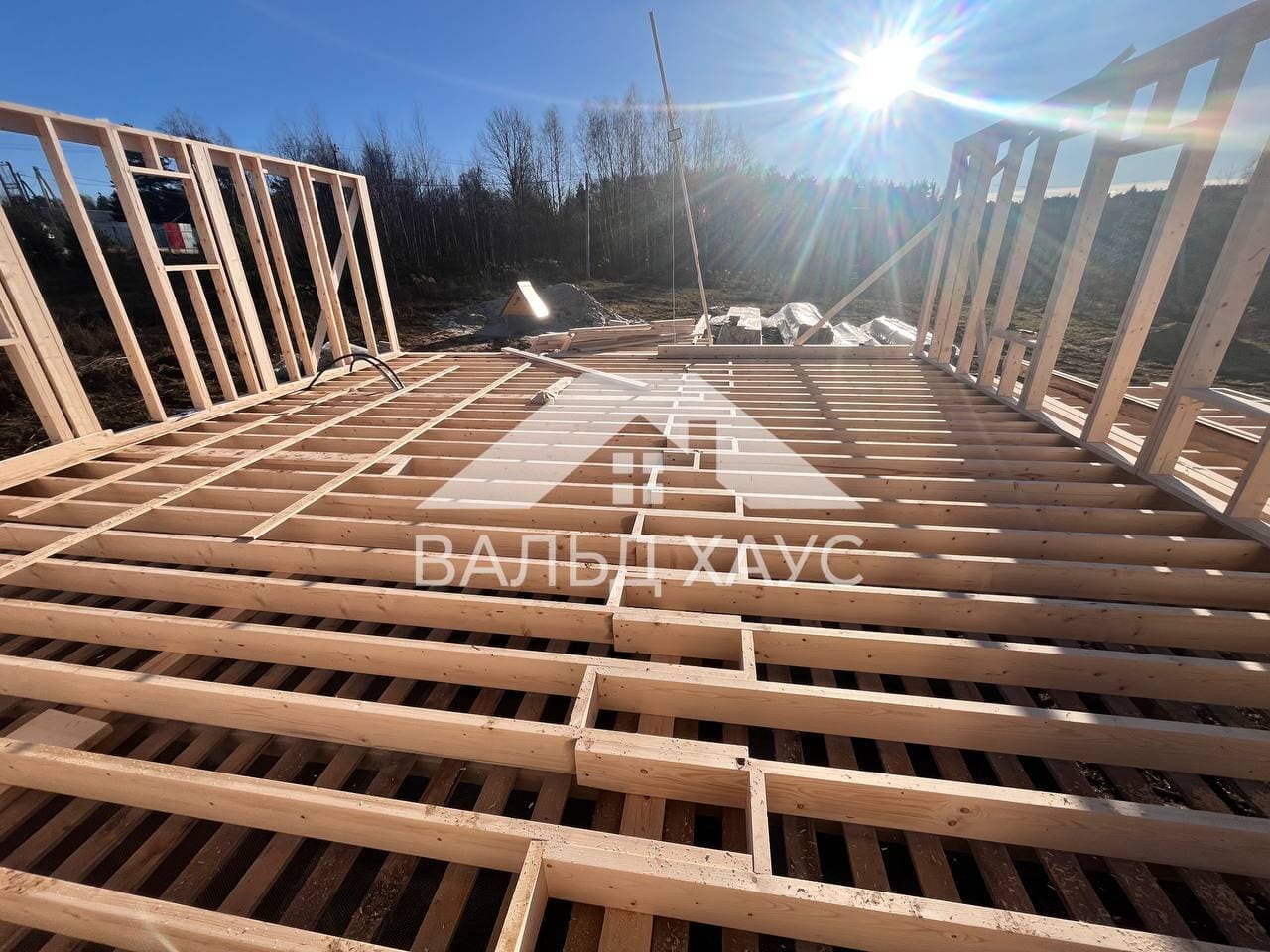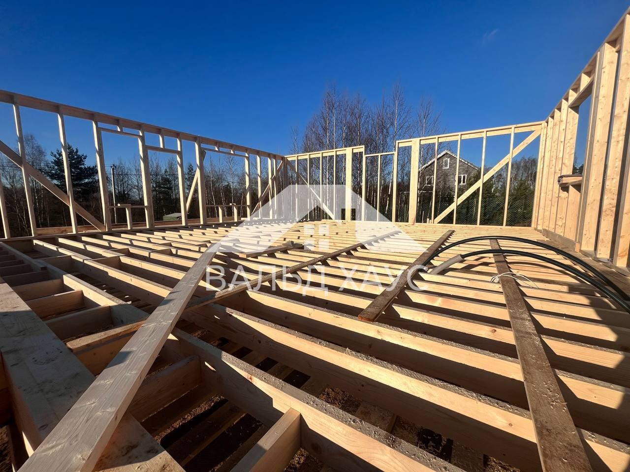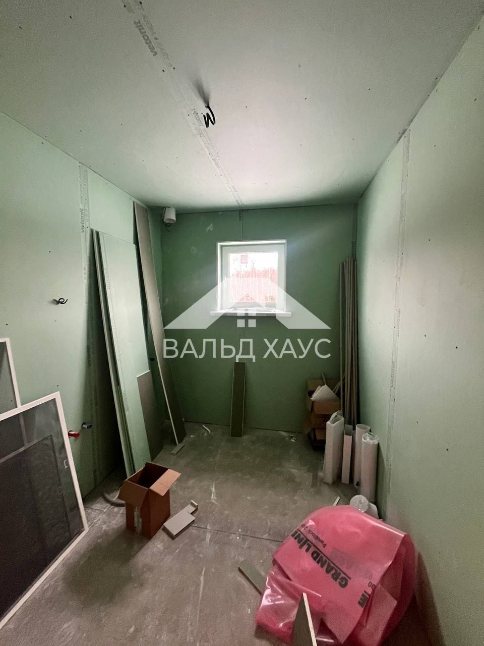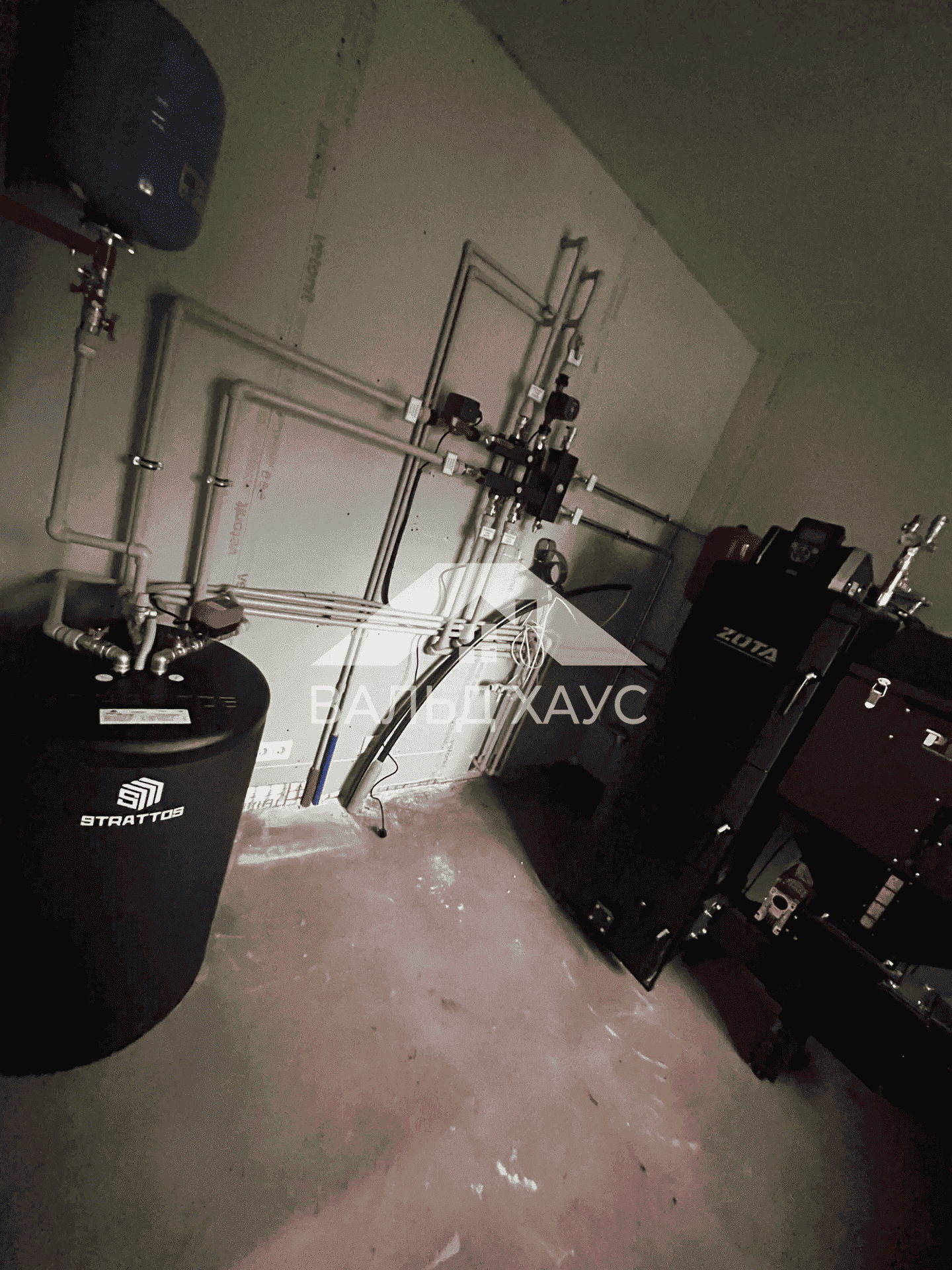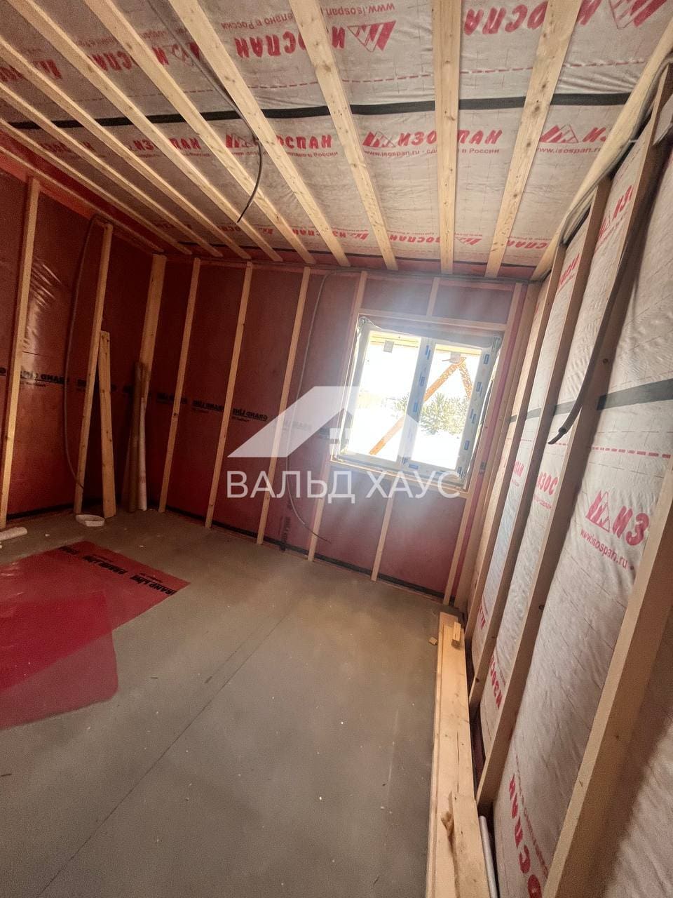 Внутренняя отделка выполнена из вагонки и гипрока в технических помещениях. Сделаны все коммуникации по дому, включая теплые полы и стяжку по первому этажу.