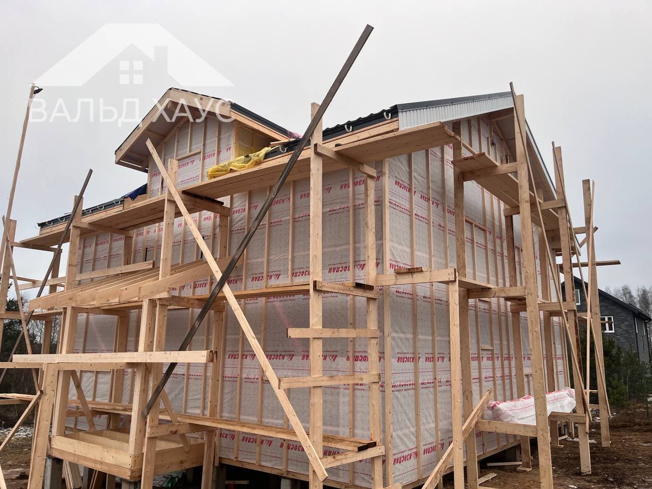 Большой двухэтажный дом по каркасной технологии предназначенный для постоянного проживания. За основу был взят типовой проект "Вамос" и внесены небольшие корректировки по желаниям Заказчицы.